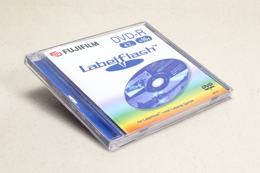 「Labelflash」は、YAMAHAと富士フイルムによって開発された、レーベル面への印刷に対応したDVD-Rドライブの機能、およびディスク。印刷といってもプリンターを用意する必要はなく、光学ドライブのみで印刷できるというのがメリットです。