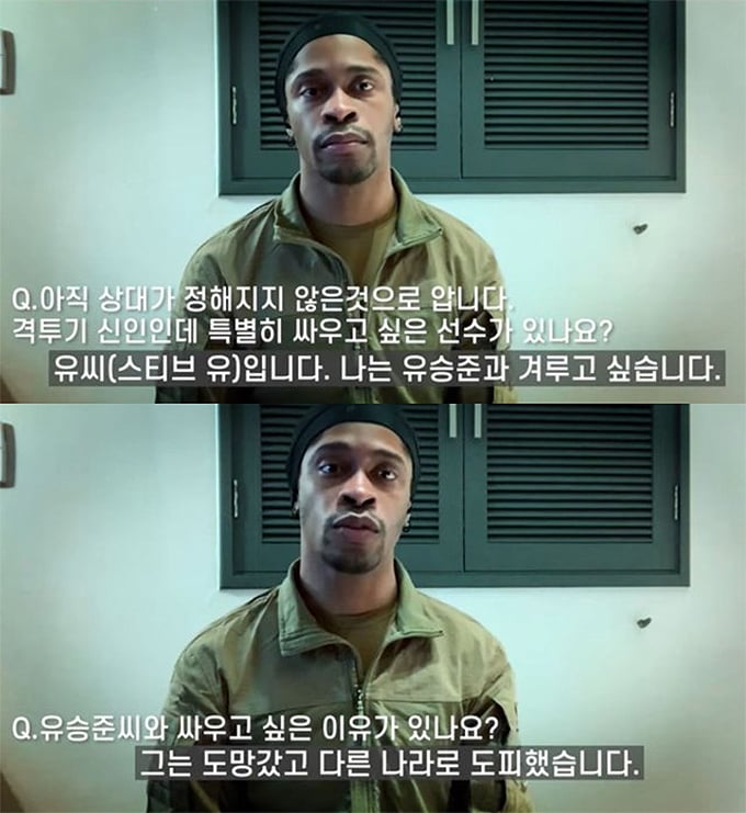 하지만 "특별히 싸우고 싶은 선수가 있다"며 "미스터 유. '유승준'과 겨루고 싶다"고 말했다.